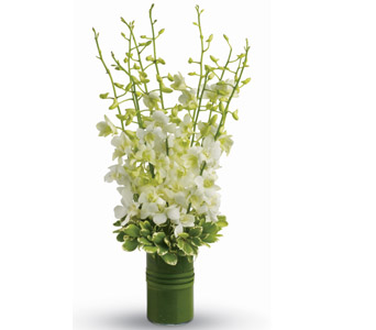 For a gift of absolute serenity and joy, this simple vase of pure white orchids is a study in beauty. Flowers are subject to seasonal availability. In the event that any of the flowers are unavailable, the florist will substitute with a similar flower in the same shape, style and colour. Stem count, packaging and container may vary. Standard (Pictured Price) : T12V