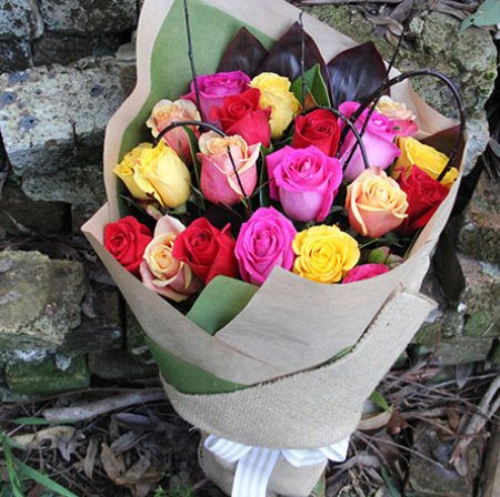 Send a delectable array of colourful roses in all shades of the rainbow, inspired by Eat Pray Love. This magnificent multi-coloured rose bouquet is fresh, bright and beautiful, and guaranteed to deliver vibrancy and positivity into whatever room it is displayed! Eat Pray Love indeed! These rainbow roses come in a beautifully wrapped bouquet of red, pink and yellow roses, accompanied by fresh greenery to truly make these roses sparkle. To send flowers, simply place your order via our online florist shop, or call our helpful consultants toll free on 1800 666 646.