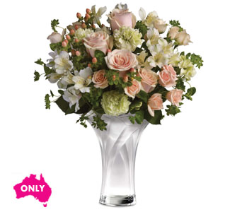 You’d do anything for her, so let her know how you feel by sending this generous and gorgeous arrangement.Hand arranged in an exquisite Celebrate Mum vase. The Celebrate Keepsake Vase is only available for delivery in AUSTRALIA. Flowers are subject to seasonal availability. In the event that any of the flowers are unavailable, the florist will substitute with a similar flower in the same shape, style and colour. Stem count, packaging and container may vary. If the requested keepsake container is not available, you will be contacted and offered a second choice. Standard (Pictured Price) : K6V
