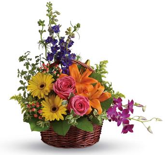 Celebrate their greatness with this glorious rainbow of lilies, roses, gerberas, orchids and delphinium! Flowers are subject to seasonal availability. In the event that any of the flowers are unavailable, the florist will substitute with a similar flower in the same shape, style and colour. Stem count, packaging and container may vary. Standard (Pictured Price) : A55