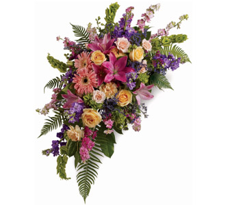 Console and comfort with this reverent spray of rainbow blooms. It’s a radiant way to remember the departed. Flowers are subject to seasonal availability. In the event that any of the flowers are unavailable, the florist will substitute with a similar flower in the same shape, style and colour. Stem count, packaging and container may vary. Standard (Pictured Price) : S28
