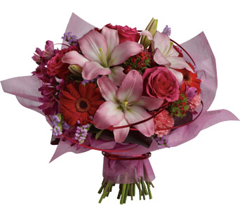 This stylish array of roses, lilies and gerberas makes yours a sophisticated statement of affection. Flowers are subject to seasonal availability. In the event that any of the flowers are unavailable, the florist will substitute with a similar flower in the same shape, style and colour. Stem count, packaging and container may vary. Standard (Pictured Price) : B47