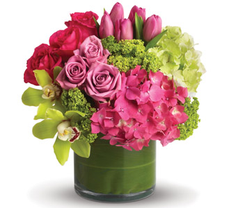 Upscale and uptown. This fantastic arrangement is a beauty and a half to behold. Overflowing with gorgeous blossoms and delivered in a leaf-lined cylinder vase, itÂ’s truly a floral fantasy. Flowers are subject to seasonal availability. In the event that any of the flowers are unavailable, the florist will substitute with a similar flower in the same shape, style and colour. Stem count, packaging and container may vary. Standard (Pictured Price) : C48V