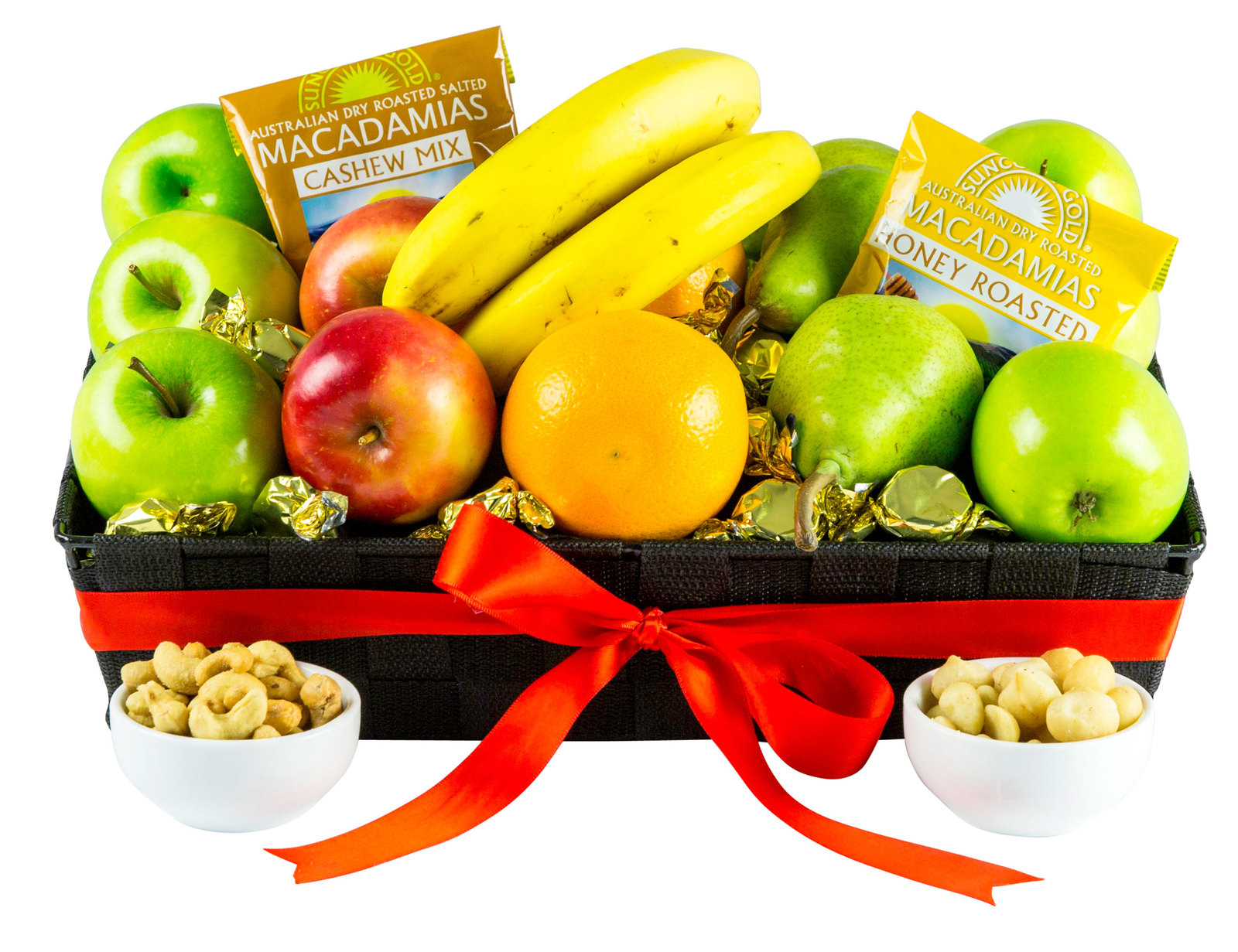 This gorgeous fruit hamper is overloaded with the freshest of fruit and is topped off with Australian crunchy nuts and toffees. Perfectly presented it’s a great gift for any ocassion!