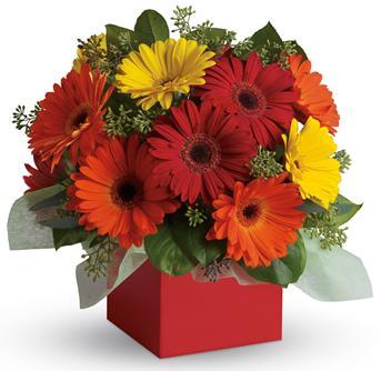 Brighten their day with this exuberant burst of beauty! Joyful gerberas make everyone smile.