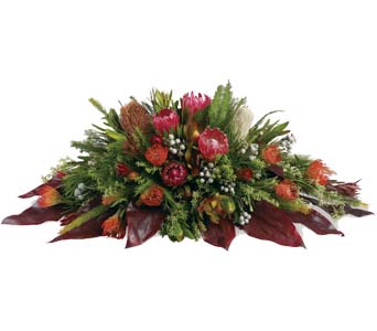 A lush, natural expression of love and adoration, this impressivecasket spray of natives shares the depth of your loss. Flowers are subject to seasonal availability. In the event that any of the flowers are unavailable, the florist will substitute with a similar flower in the same shape, style and colour. Stem count, packaging and container may vary. Standard (Pictured Price) : S37
