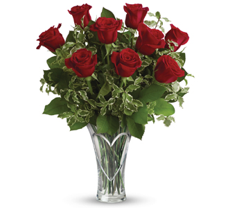 Nine red roses are a timeless gift of love, and the time is always right to give and receive this enchanting Heartfelt Keepsake vase arrangement. The Heartfelt Keepsake Vase is 20cm high. The Heartfelt Keepsake Vase is only available for delivery in Australia and New Zealand. Flowers are subject to seasonal availability. In the event that any of the flowers are unavailable, the florist will substitute with a similar flower in the same shape, style and colour. Stem count, packaging and container may vary. If the requested Keepsake container is not available, you will be contacted and offered a second choice. Standard (Pictured Price) : K61V