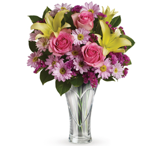 Ring in spring with roses and lilies arranged in a simple Heartfelt Keepsake vase. A wonderful way to brighten up the season! The Heartfelt Keepsake Vase is 20cm high. The Heartfelt Keepsake Vase is only available for delivery in Australia and New Zealand. Flowers are subject to seasonal availability. In the event that any of the flowers are unavailable, the florist will substitute with a similar flower in the same shape, style and colour. Stem count, packaging and container may vary. If the requested Keepsake container is not available, you will be contacted and offered a second choice. Standard (Pictured Price) : K64V