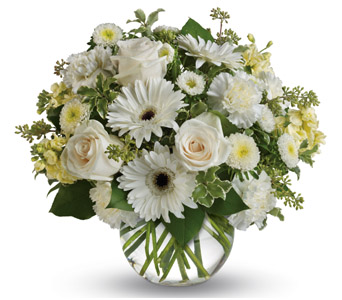 Wondrous white roses, gerberas and carnations in a vase bring a breath of fresh air to your special someone. Flowers are subject to seasonal availability. In the event that any of the flowers are unavailable, the florist will substitute with a similar flower in the same shape, style and colour. Stem count, packaging and container may vary. Standard (Pictured Price) : A48V
