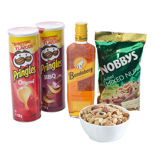 Party favourites come together in this tasty gift pack! With a bottle of Bundaberg rum, Pringles and mixed nuts, Party Time is the gift to impress all your friends and family!