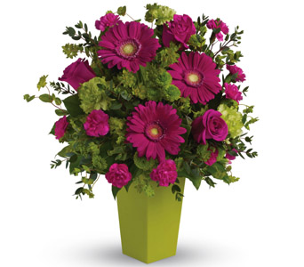 A gorgeously chic gift for any occasion, this perky hot pink and green arrangement is pure fun. So much beauty for such a reasonable price, itÂ’s the perfect choice for birthday, love and romance, any happy occasion. Flowers are subject to seasonal availability. In the event that any of the flowers are unavailable, the florist will substitute with a similar flower in the same shape, style and colour. Stem count, packaging and container may vary. Standard (Pictured Price) : C25