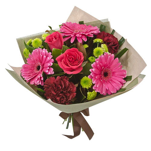 Rich in colour, Rendezvous features floral favourites such crimson roses, pink gerberas and burgundy carnations! Dotted with pops of lime chrysanthemums, this classic beauty is lovingly wrapped up in a soft satin bow. Strikingly beautiful, our Rendezvous bouquet is sure to brighten your loved one’s day!