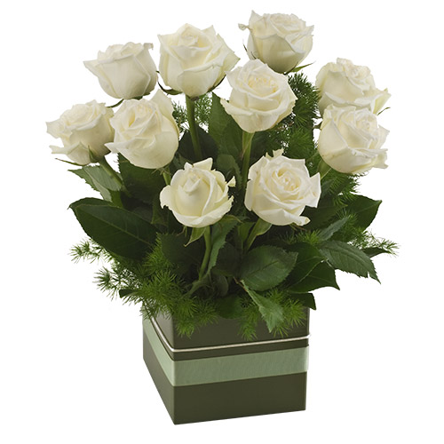 Simple and elegant, Snowflake is the gift we know they’ll love! Featuring ten white roses in a petite olive mini box, Snowflake is a classic beauty!