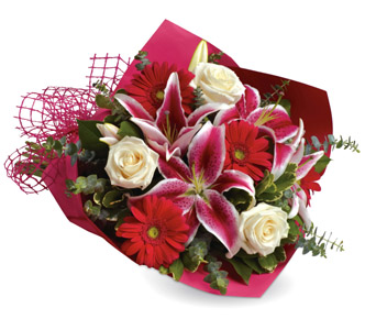 Show someone how much you love them with this gorgeous bouquet of lilies, roses and gerberas. Flowers are subject to seasonal availability. In the event that any of the flowers are unavailable, the florist will substitute with a similar flower in the same shape, style and colour. Stem count, packaging and container may vary. Standard (Pictured Price) : B26