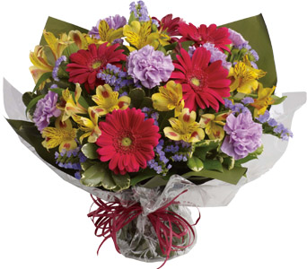 Unexpected gifts are the best gifts! Send one they will never forget with this sweet bouquet of hot pink, yellow and purple blooms. Flowers are subject to seasonal availability. In the event that any of the flowers are unavailable, the florist will substitute with a similar flower in the same shape, style and colour. Stem count, packaging and container may vary. Standard (Pictured Price) : B46