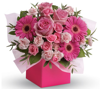 Looking to pamper someone special? Think pink! Hot pink gerbera mix with soft pink roses and mini carnations in this fabulously fun arrangement. Flowers are subject to seasonal availability. In the event that any of the flowers are unavailable, the florist will substitute with a similar flower in the same shape, style and colour. Stem count, packaging and container may vary. Standard (Pictured Price) : A46